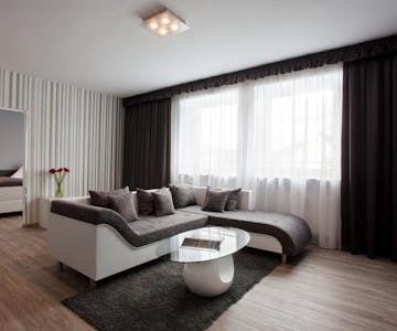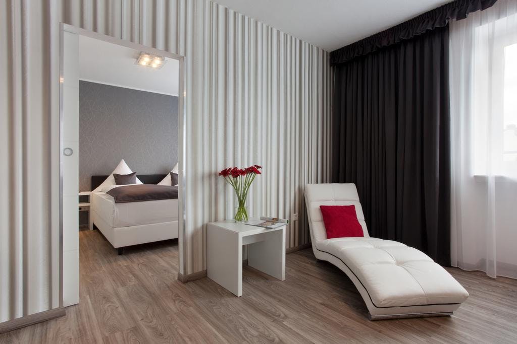 Our roomy suites are around 40m² in size and offer great comfort thanks to their separate living and sleeping areas, a separate kitchen and dining area. You have enough space here to feel right at home on a longer stay.